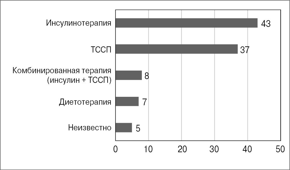 Рис. 2. Характеристика сахароснижающей терапии у пациентов с СД 2 и ОИМ (% от общего числа).