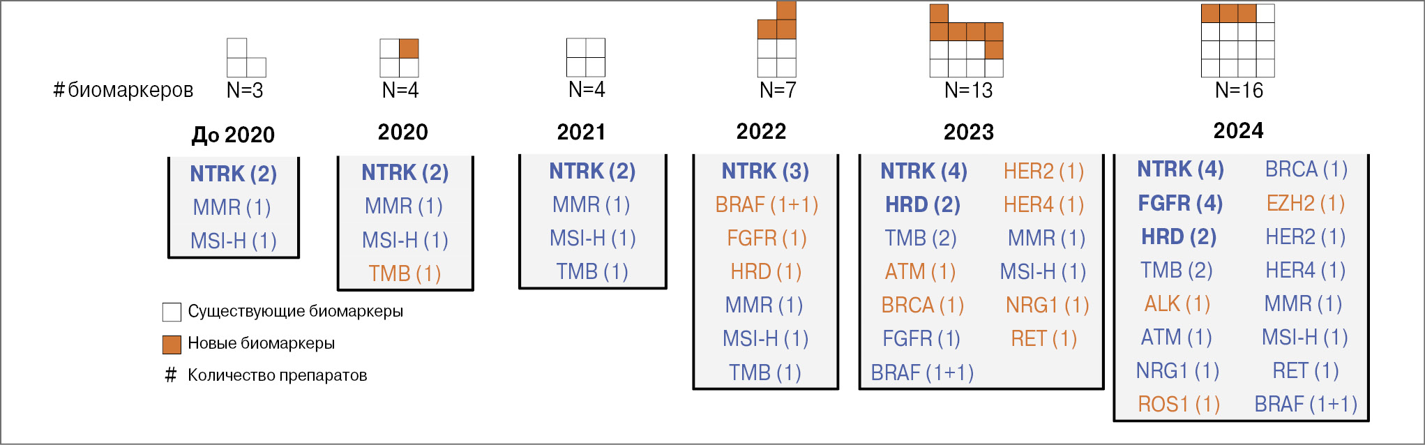 Рис. 1. Агностические биомаркеры, таргетная терапия для которых может быть одобрена к 2024 г.