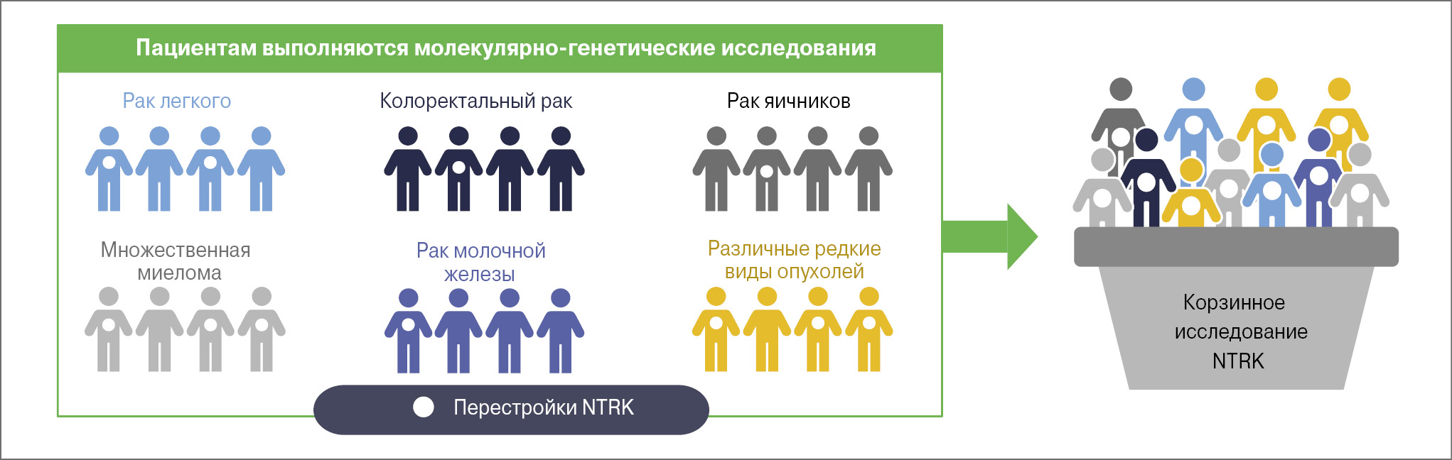 Рис. 2. Изучение терапии для редких молекулярных подтипов опухолей возможно в рамках корзинных исследований.