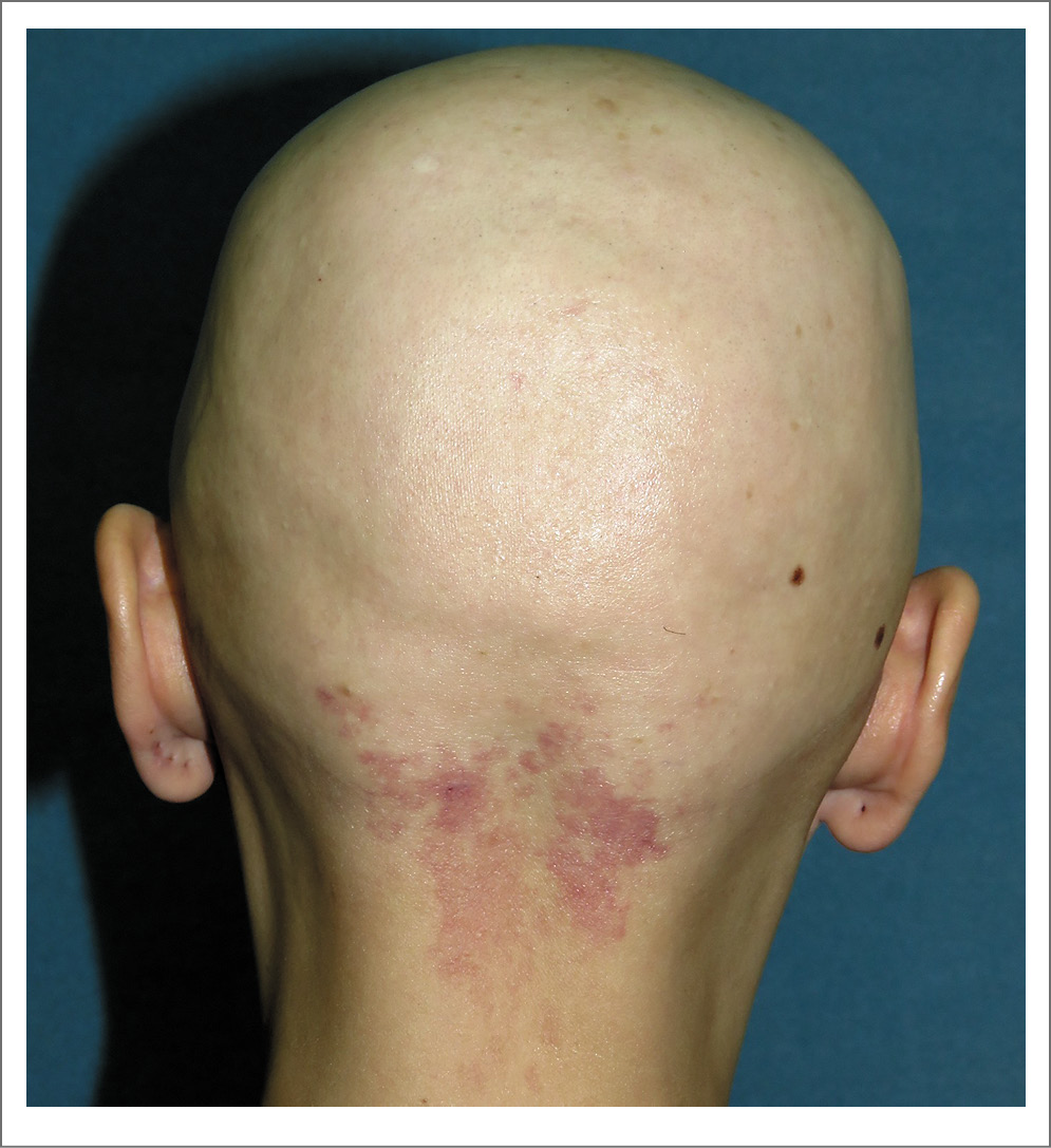 - Hatzis J, Kostakis P, Tosca A, et al. Nuchal nevus flammeus as a skin marker of prognosis in alopecia areata. Dermatologica. 1988;177(3):149-51.