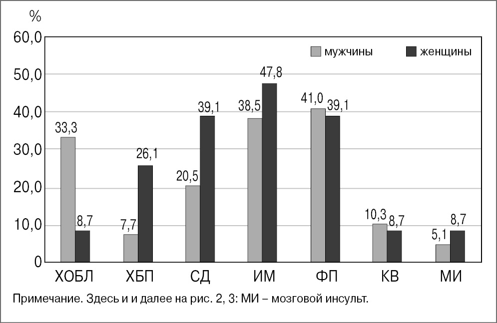Рис. 3. Сопутствующие состояния у пациентов GG-генотипа полиморфизма rs1800795 гена IL6.