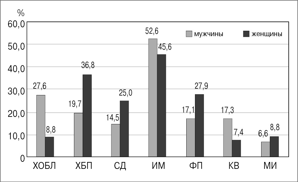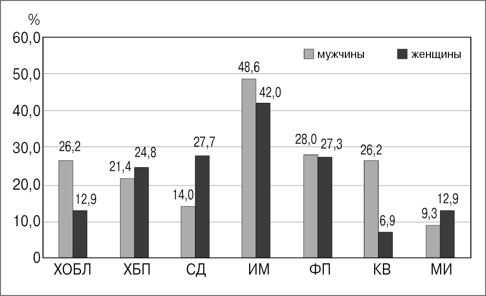 Рис. 1. Сопутствующие состояния у пациентов СС-генотипа полиморфизма rs1800795 гена IL6.