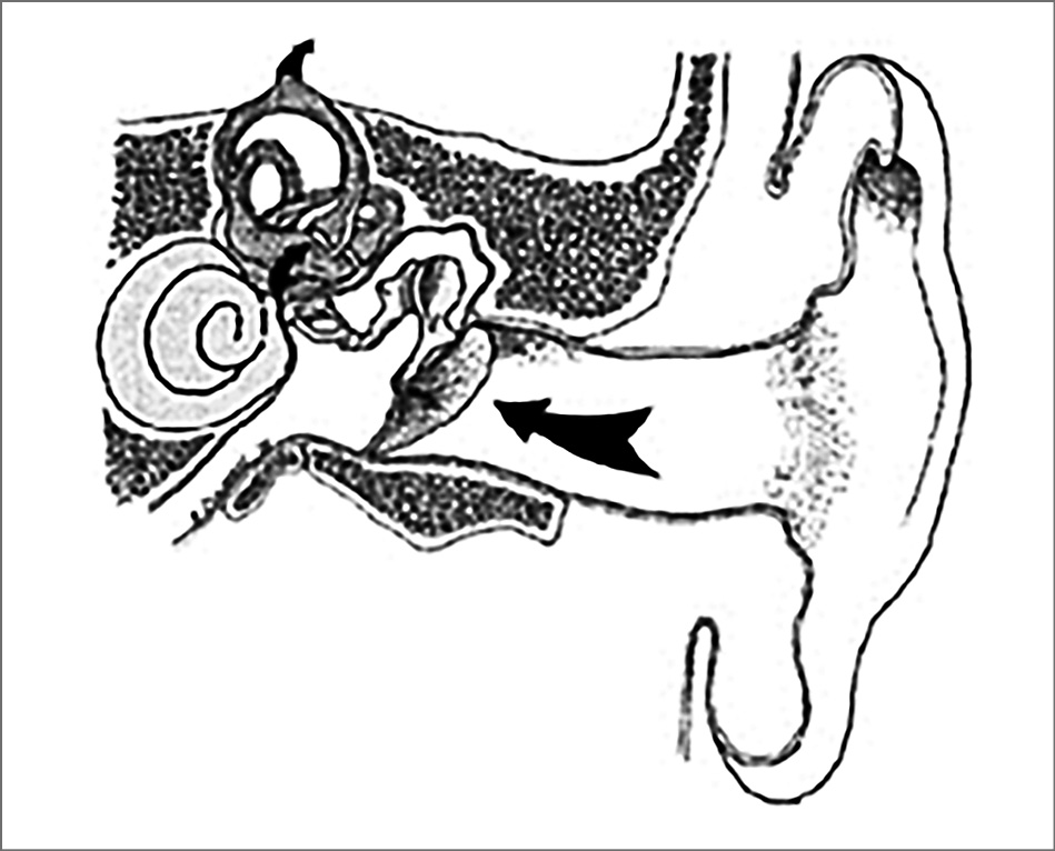 Гиперакузия имеет несколько потенциальных механизмов, которые не являются взаимоисключающими. Условно, причины возникновения гиперакузии разделяют на несколько групп: периферические, связанные с нарушением в области среднего и внутреннего уха и центральные. К периферическим факторам можно отнести паралич Белла, синдром Рамсея Ханта, перилимфатическую фистулу лабиринта, болезнь Меньера, отосклероз, синдром Минора [6, 7]. Следует отметить, что из выявленных заболеваний несколько связано с поражением лицевого нерва. Поскольку лицевой нерв иннервирует стапедиальный рефлекс, который участвует в снижении воспринимаемой интенсивности импульсного звука, нарушение функции может снизить этот рефлекс и, следовательно, увеличить воспринимаемую интенсивность звука [8]. При синдроме Минора гиперакузия сопровождается выраженной аутофонией, проявляется чересчур громким восприятием своего голоса в голове, причем он звучит «как из испорченного громкоговорителя». Одним из распространенных симптомов синдрома Минора является феномен Туллио – головокружение, вызванное громкими или обычными повседневными звуками (рис. 1). Кроме того, пациент может слышать биение сердца, звук своих шагов при ходьбе или беге, жевательных, глотательных движений, скрип суставов. Некоторые пациенты жалуются на столь высокую степень гиперакузии, проявляющуюся причудливым феноменом, – они слышат движение глазных яблок при чтении в тихом помещении [6]. Также описаны случаи развития явления гиперакузии при повреждении лицевого нерва при антромастоидотомии [7, 9].