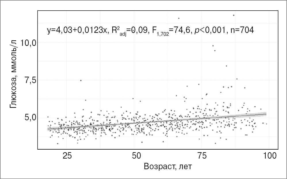 Рис. 2. Изменение уровня глюкозы с возрастом.