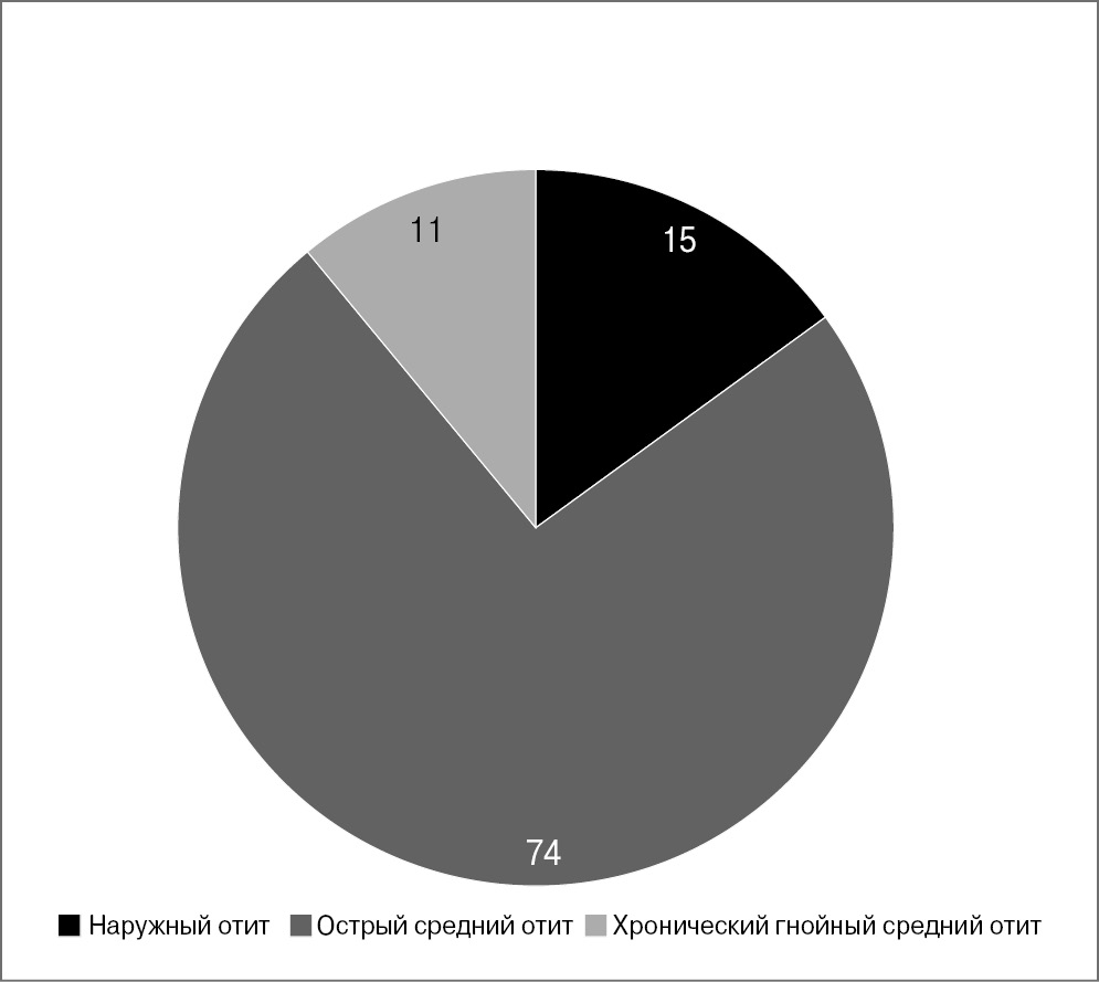 Соотношение частоты поражения отделов уха представлено на рис. 1 [3].