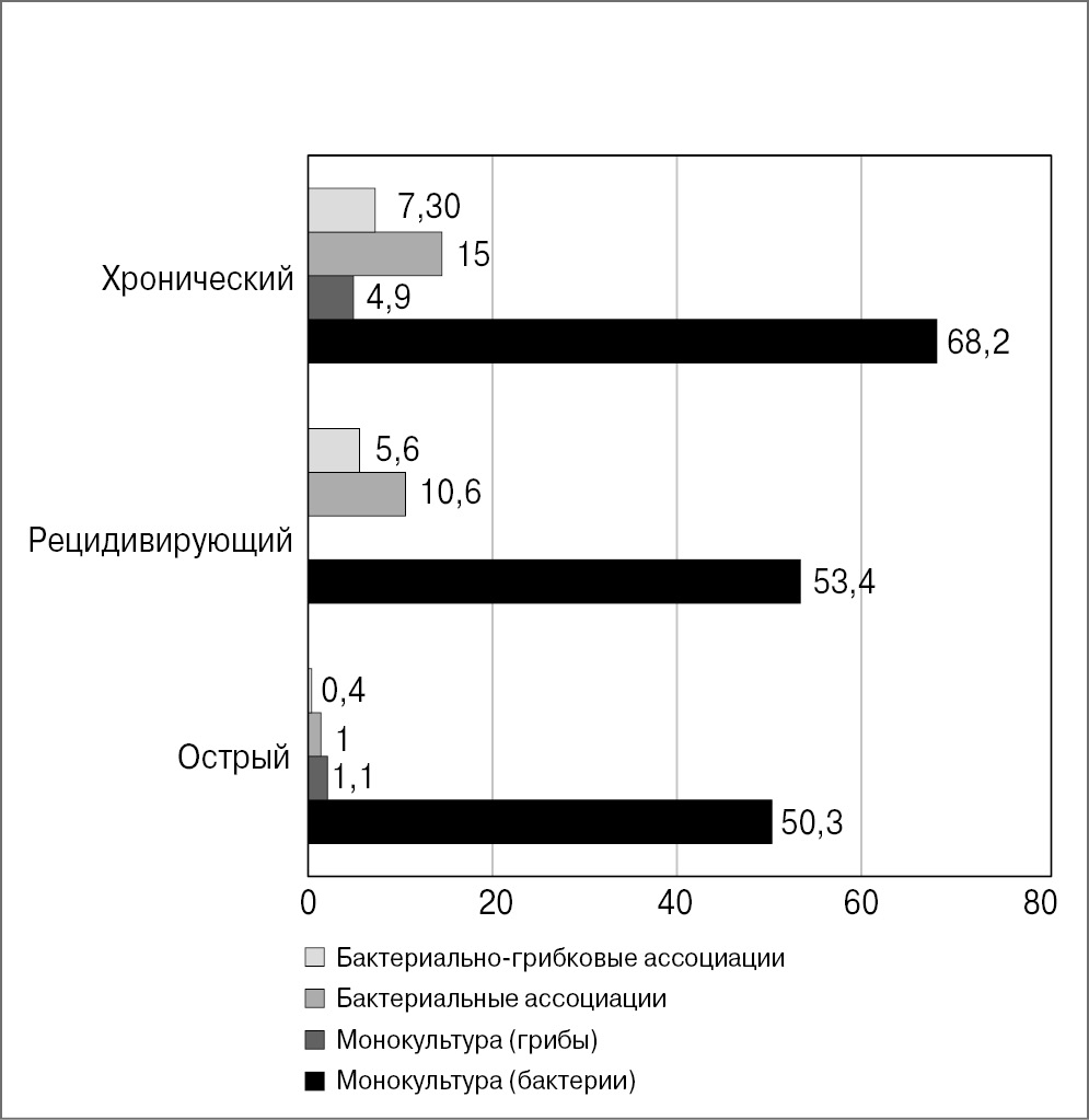 Рис. 2. Частота выделения возбудителей при разных формах среднего отита у детей, % [6].