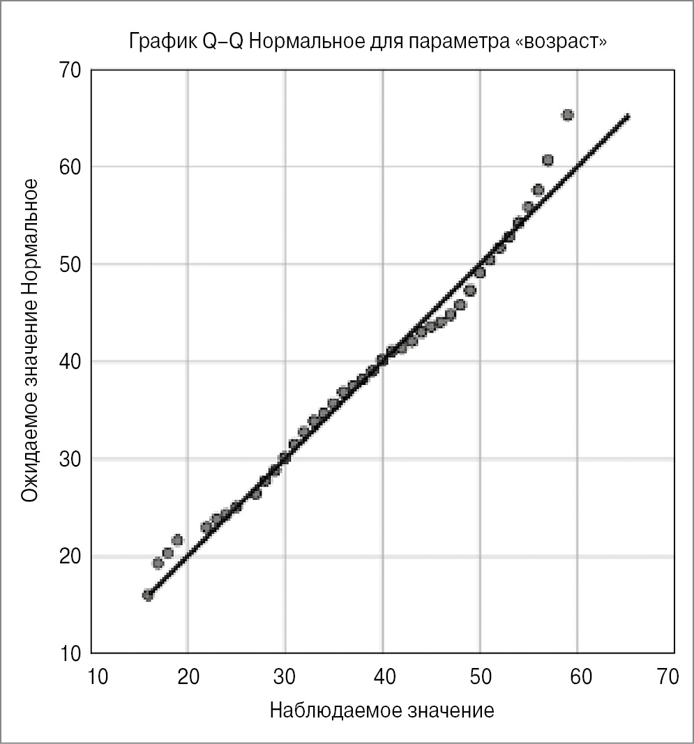 Рис. 1. Результат изучения принадлежности выборок к нормальному распределению в виде построения Q–Q plot. Параметр – возраст пациентов обеих групп.