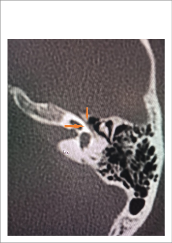 Рис. 1. Лицевой нерв в лабиринтной части фаллопиева канала на КТ височных костей.