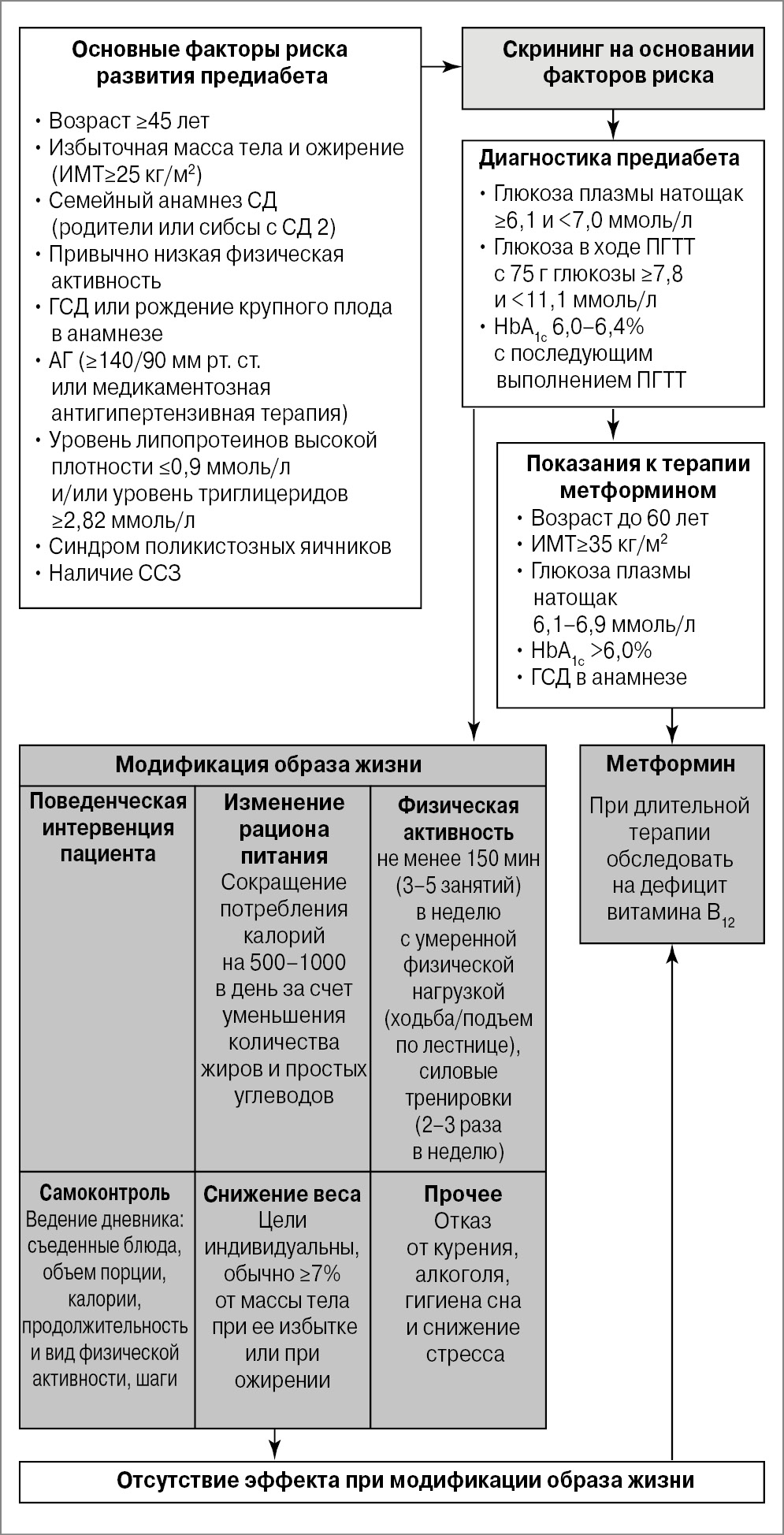 Рис. 1. Подход к скринингу, диагностике и лечению предиабета (адаптировано [5]).