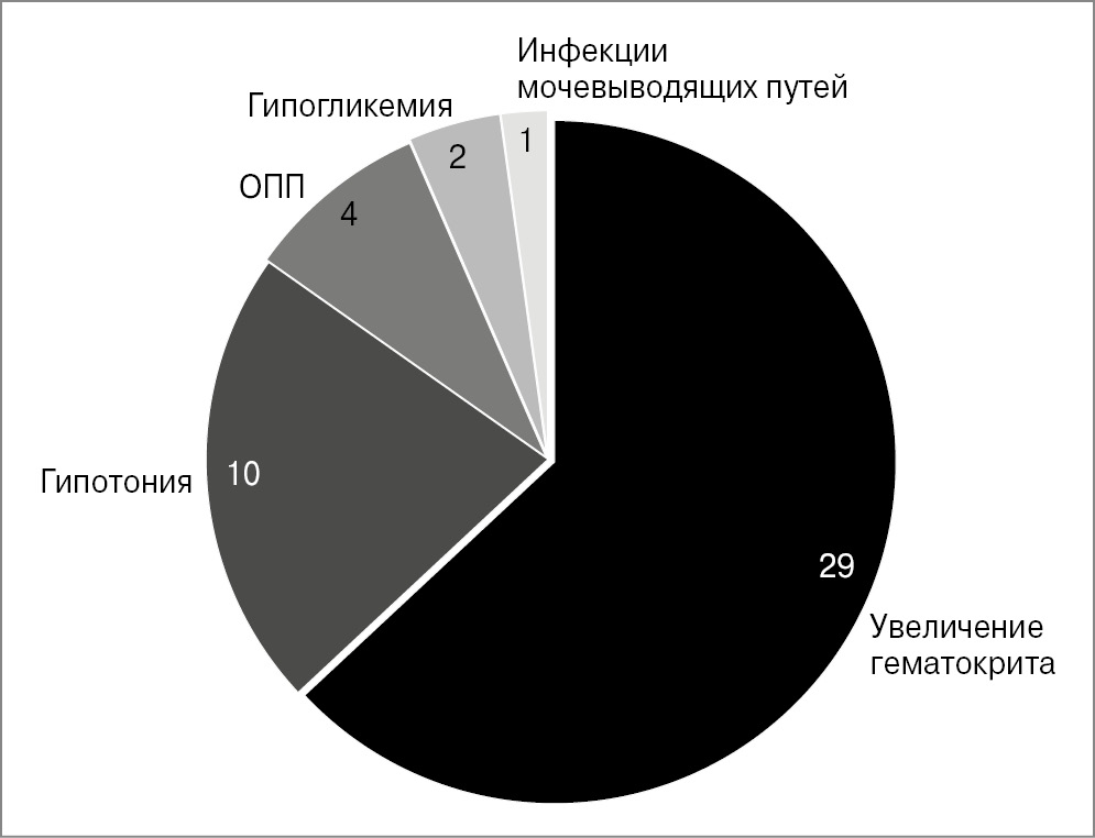 Рис. 1. Структура неблагоприятных явлений в процессе наблюдения, количество случаев.