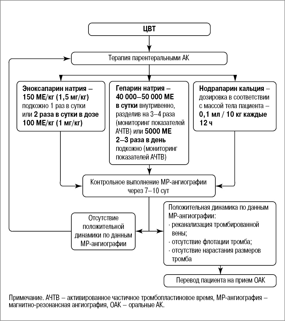Рис. 3. Алгоритм АК терапии при ЦВТ.