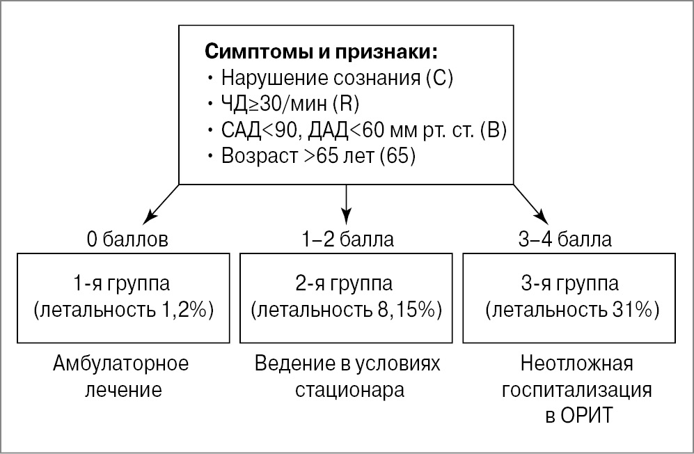 Рис. 1. Использование шкалы CRB-65 для выбора места лечения при ВП.