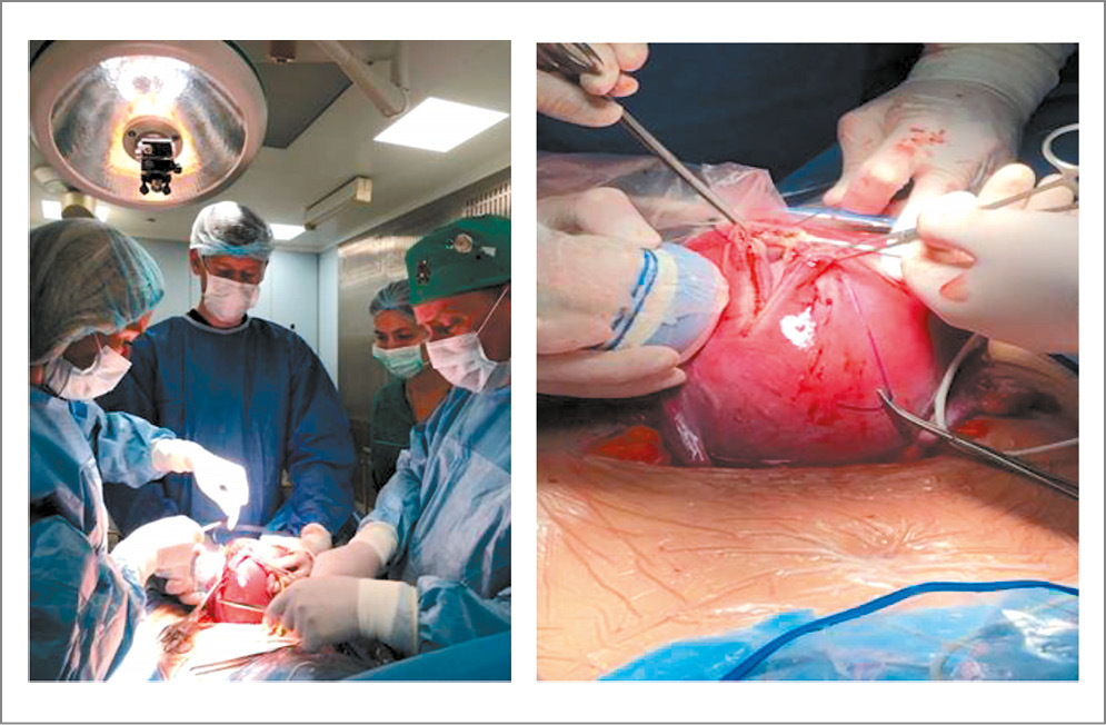 В настоящее время возможны 2 варианта лечения открытого спинального дизрафизма. Стандартная тактика заключается в закрытии дефекта в течение 1-х суток после рождения ребенка, при необходимости возможна установка шунта в полость желудочков ГМ (вентрикулоперитонеальное шунтирование). Второй вариант лечения – внутриутробная коррекция spina bifida, выполняемая на сроке беременности 19–26 нед. В мировой литературе имеются экспериментальные и клинические данные, указывающие, что пренатальное закрытие дефекта предотвращает или существенно снижает развитие аномалии Киари 2 и улучшает моторную функцию нижних конечностей [15, 16]. В нашей стране с 2019 г. внутриутробные операции при Киари 2 активно проводятся командой акушеров-гинекологов и детских нейрохирургов в ФГБУ «НМИЦ АГП им. акад. В.И. Кулакова» (рис. 4). Данная операция относится к «открытой» фетальной хирургии, когда разрез передней брюшной стенки беременной и стенки матки обеспечивает доступ к плоду. Цель данного лечения – прекратить дальнейшее внутриутробное повреждение спинного мозга и предотвратить, уменьшить или дать обратное развитие аномалии Киари 2. После внутриутробной операции пациентка регулярно наблюдается врачами центра вплоть до момента родоразрешения, которое проводится путем кесарева сечения. В течение всего периода беременности пациентка находится под патронажем благотворительного фонда «Spina bifida», который оказывает многостороннюю помощь, в том числе финансовую. После рождения ребенок также патронируется специалистами фонда. С целью улучшения качества образовательного процесса специалистов во всех регионах страны и расширения их кругозора в области возможной помощи ребенку на этапе его внутриутробного развития фонд проводит бесплатный обучающий курс по пренатальной ультразвуковой диагностике ВПР ЦНС. Лекторами данного курса являются врачи-эксперты ФГБУ «НМИЦ АГП им. акад. В.И. Кулакова».