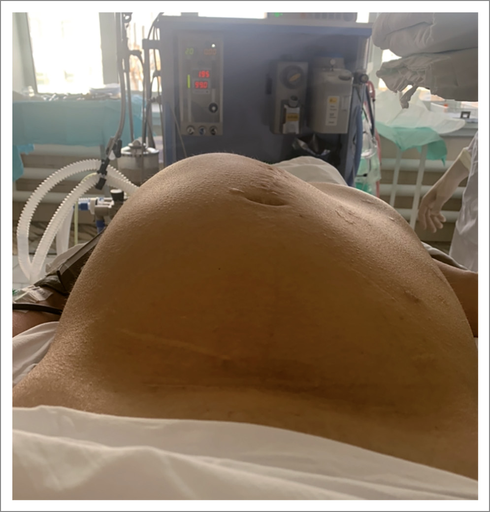 Рис. 5. Передняя брюшная стенка пациента после билатеральной лапароскопической нефрэктомии.
