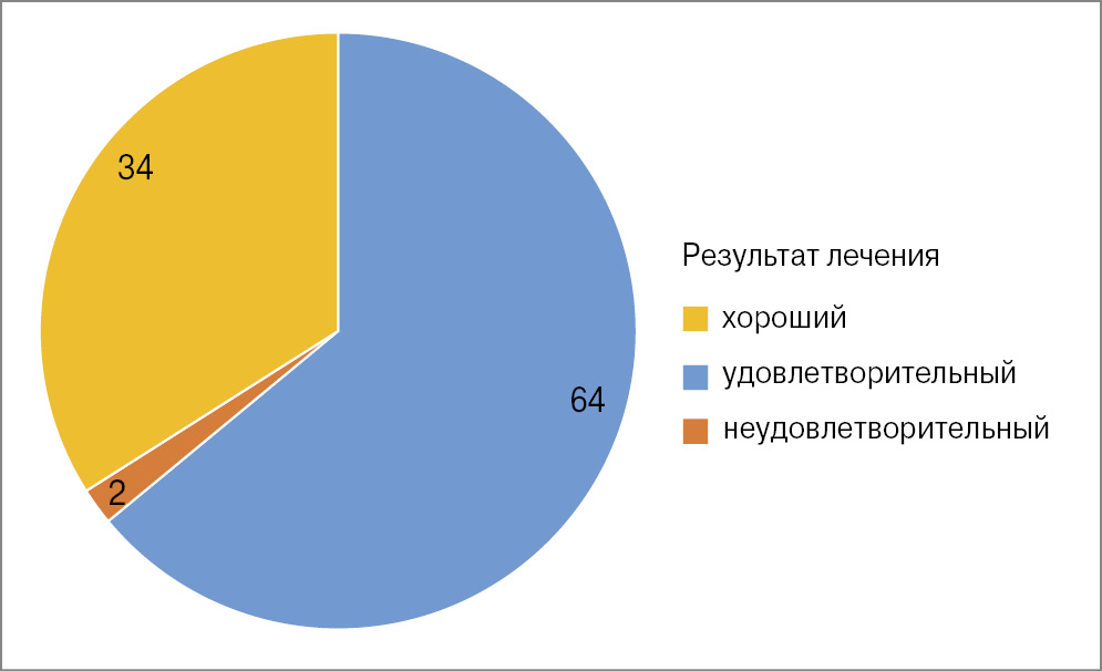 Рис. 3. Доли пациентов с различными исходами терапии, %.