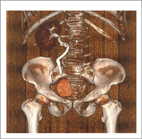 Рис. 4. Пациент В., 3D-реконструкция аплазии левой почки и левого мочеточника.