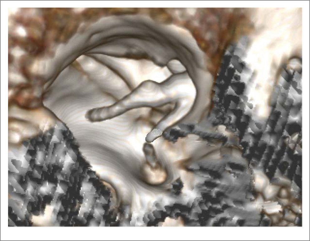 Fig. 4. Virtual CT endoscopy of the TC. The normal configuration of the AO chain was visualized.