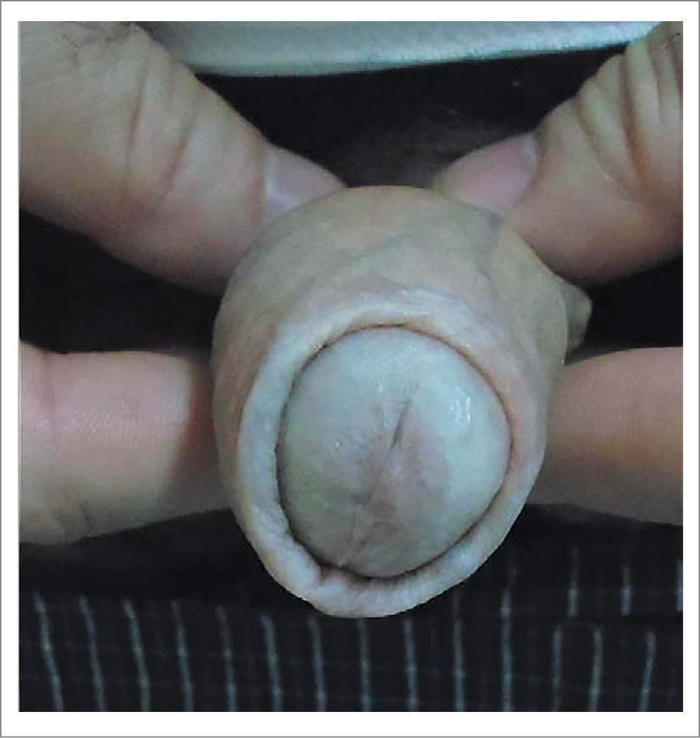 Склератрофический лихен – СЛ (рис. 3) присутствовал в 3% случаев. У всех пациентов наблюдали фимоз и рекомендовали обрезание. Длительность заболевания составила от 6 мес до 3 лет [13]. При СЛ чаще всего поражается именно кожа ПО (в 85–98% случаев) [19].