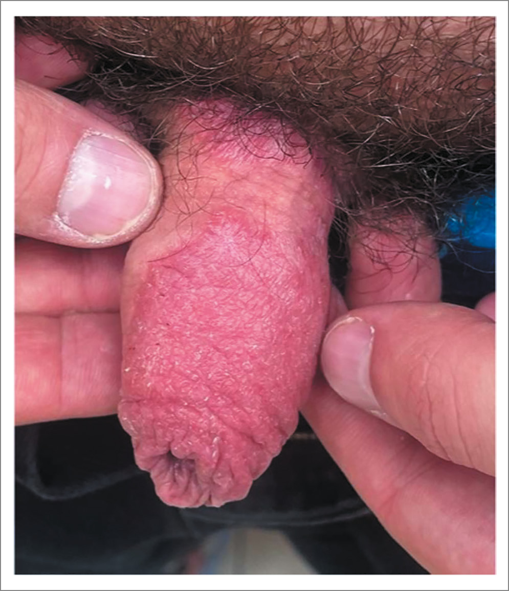 У 3% встречался псориаз гениталий (рис. 4), а псориатические поражения обнаружены и на других участках тела [13]. Около 2% населения мира страдают псориазом, а у 63% пациентов с вульгарным псориазом наблюдаются высыпания в аногенитальной области (АГО). При этом изолированным генитальным псориазом болеют 2–5% пациентов [20, 21].
