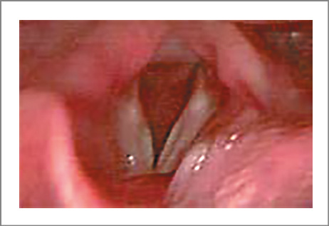 Рис. 2. Мальчик П., 11 лет. Двусторонние бороздки голосовых складок (дыхание).