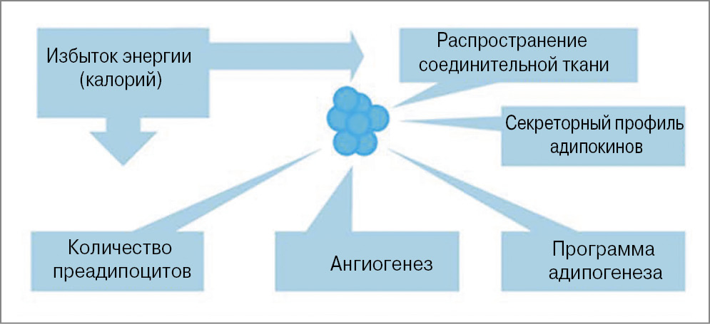 Рис. 1. Факторы, которые могут определять способность жировой ткани к увеличению.