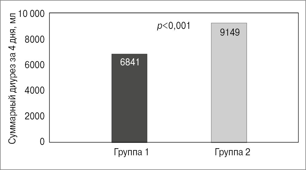 Рис. 2. Сравнение суммарного диуреза за 4 дня между группами