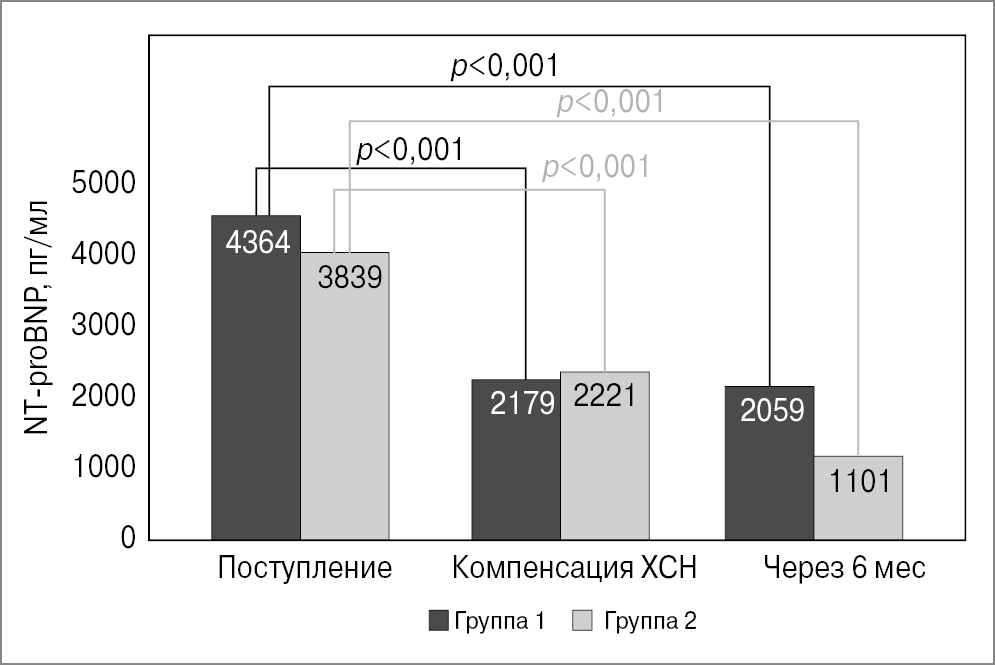 Рис. 5. Внутригрупповая динамика уровня NT-proBNP
