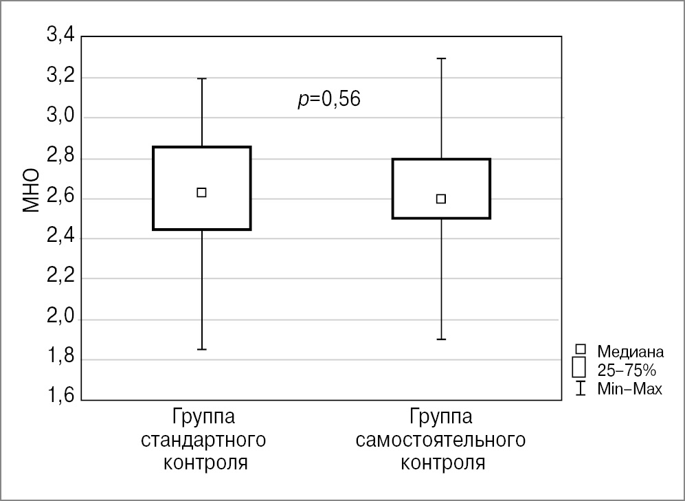 Рис. 1. Значения МНО в группах стандартного и самостоятельного контроля.