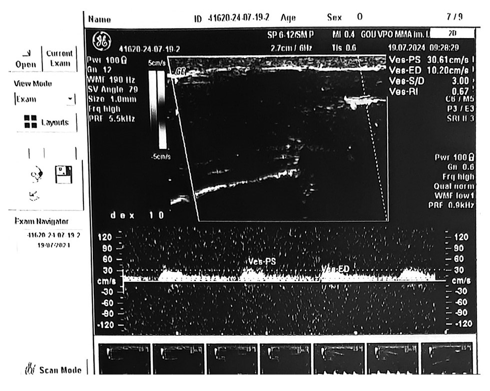 Рис. 1. Данные эходопплерографии ПЧ с фармакологической стимуляцией больного К.