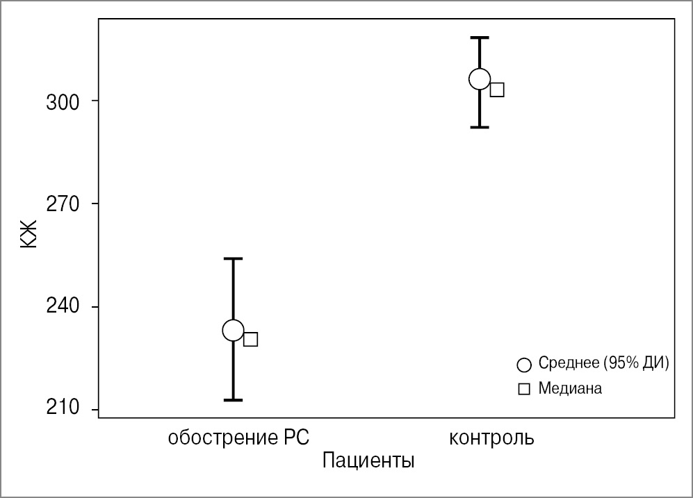 Остальные показатели КЖ также оказались достоверно снижены в стадии обострения РС (табл. 1).