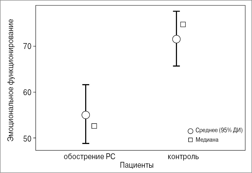 Эмоциональное функционирование | 56,1±14,4 | 73,1±17,3 | 0,032 |