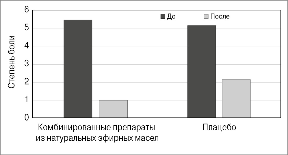 Рис. 2. Степень боли до и после приема испытуемого препарата.