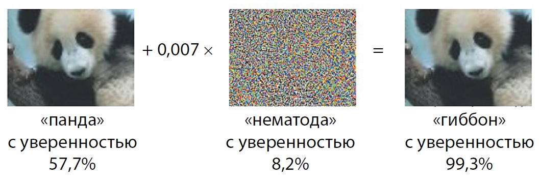 Рис. 6. Демонстрация изменения результата классификации нейронных сетей при зашумлении вводных данных.