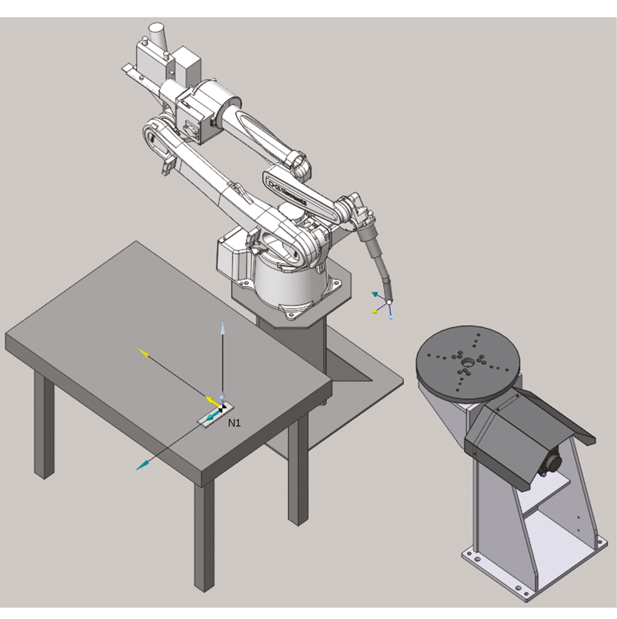 В рамках первого этапа был создан цифровой двойник ячейки ЭДВ с помощью утилиты «MachineMaker», встроенной в CAM-систему СПРУТКАМ5. Цифровой двойник позволил предугадывать кинематические ограничения оборудования и возможные столкновения на этапе симуляции процесса наплавки. Были импортированы 3D-модели следующего оборудования и оснастки: