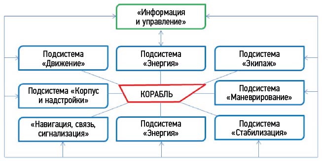 Корабль состоит из основных подсистем и трансформируется в систему «Человек – машина», благодаря экипажу. Если в парусный период требовались сила и выносливость, то сейчас главными навыками являются работа с информацией и принятие решений. Для экипажа корабль становится информационной системой.
