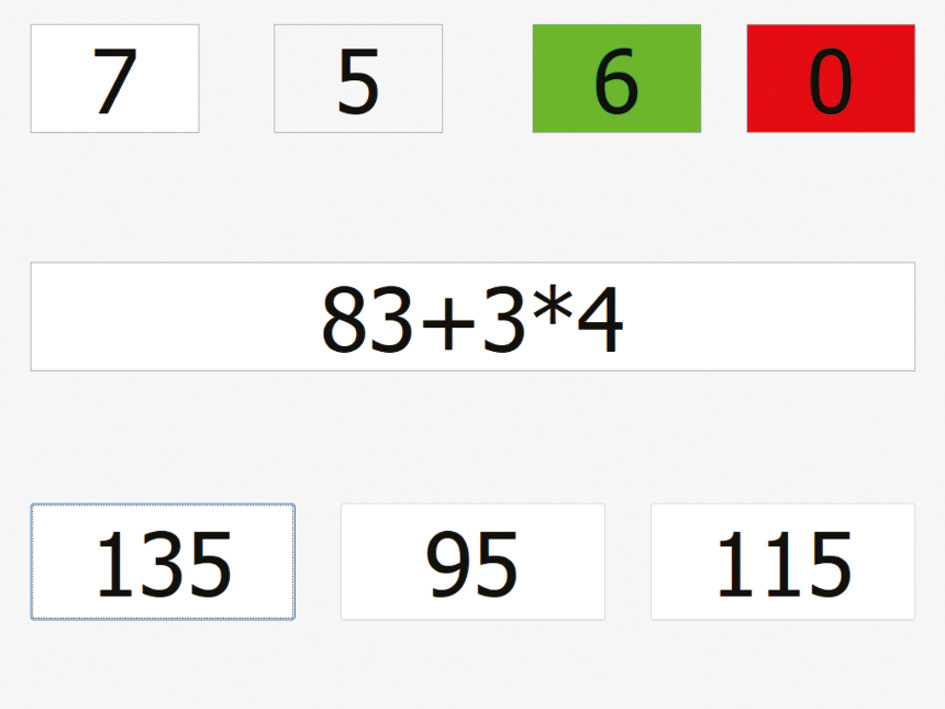 Рис. 2. Форма для выполнения цикла упражнений на примере решения арифметических выражений
